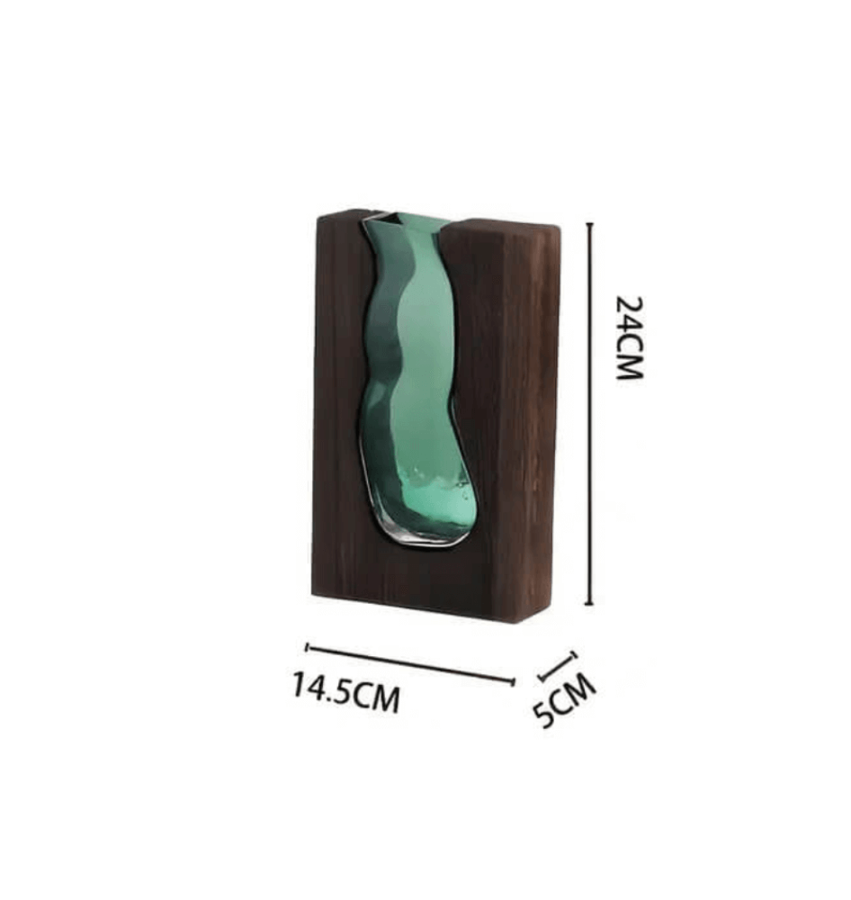 Vintage vázy ze skla a dřeva